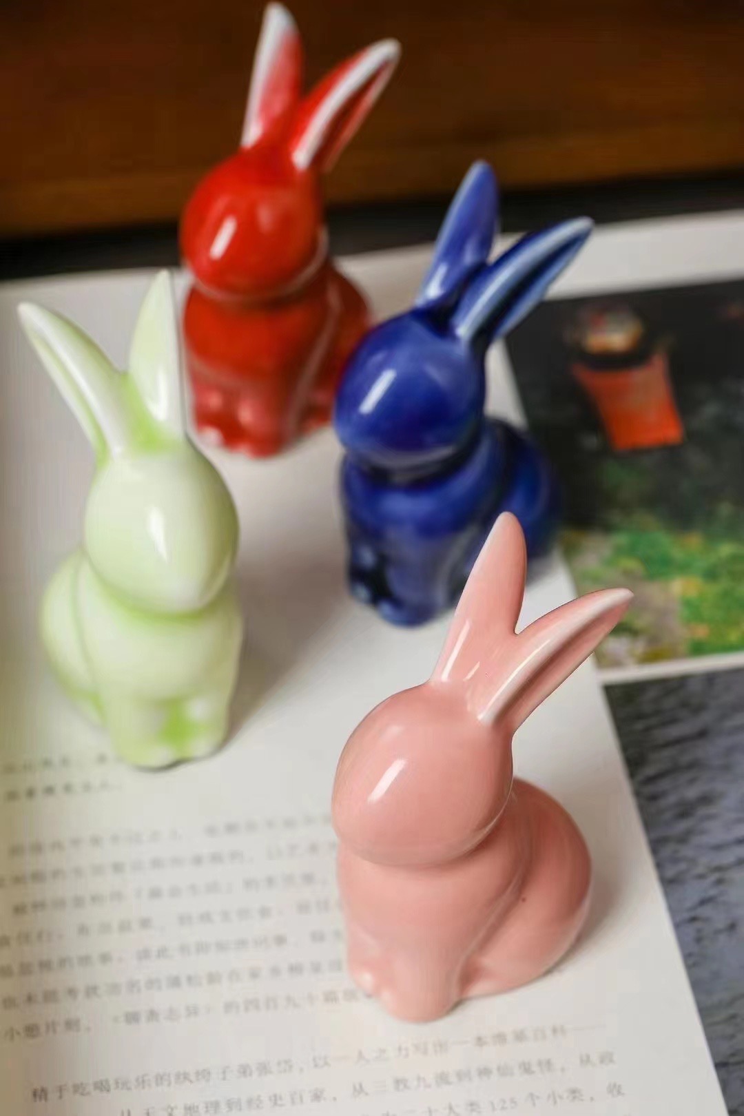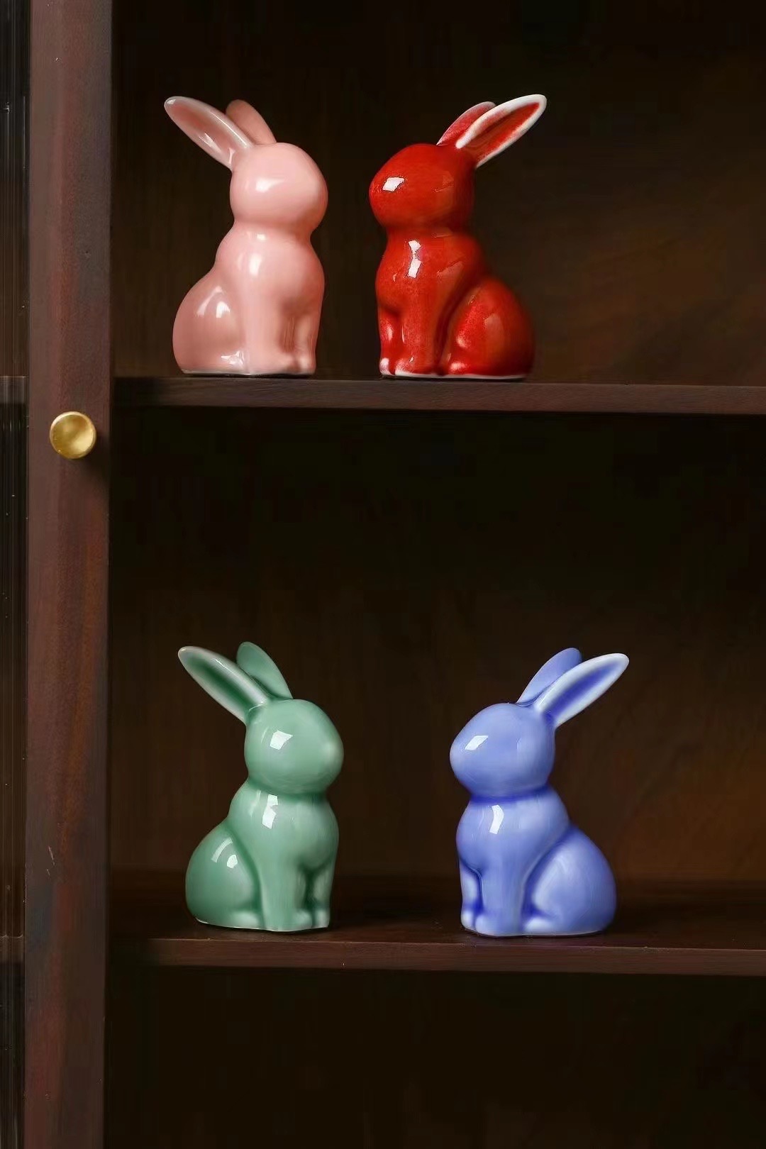顏色釉陶瓷兔子擺件