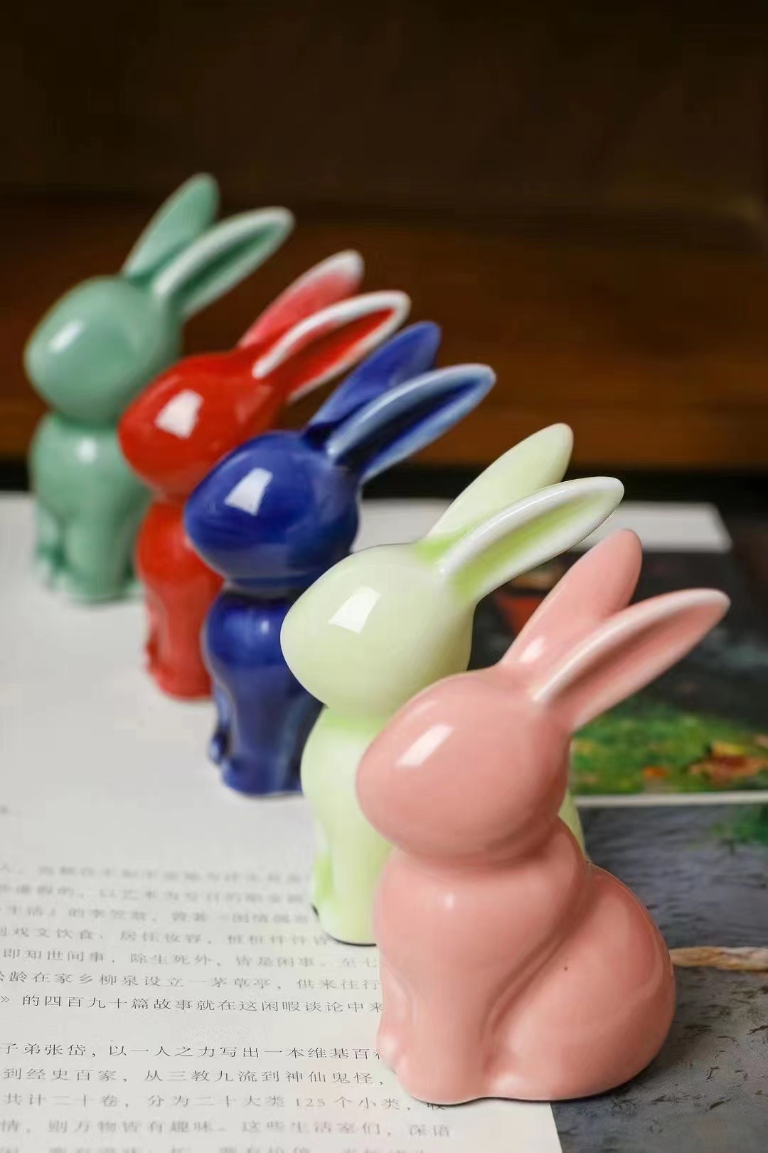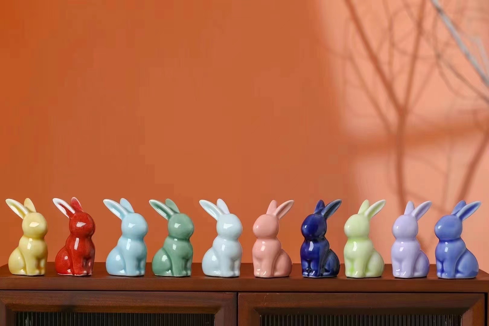 顏色釉陶瓷兔子擺件