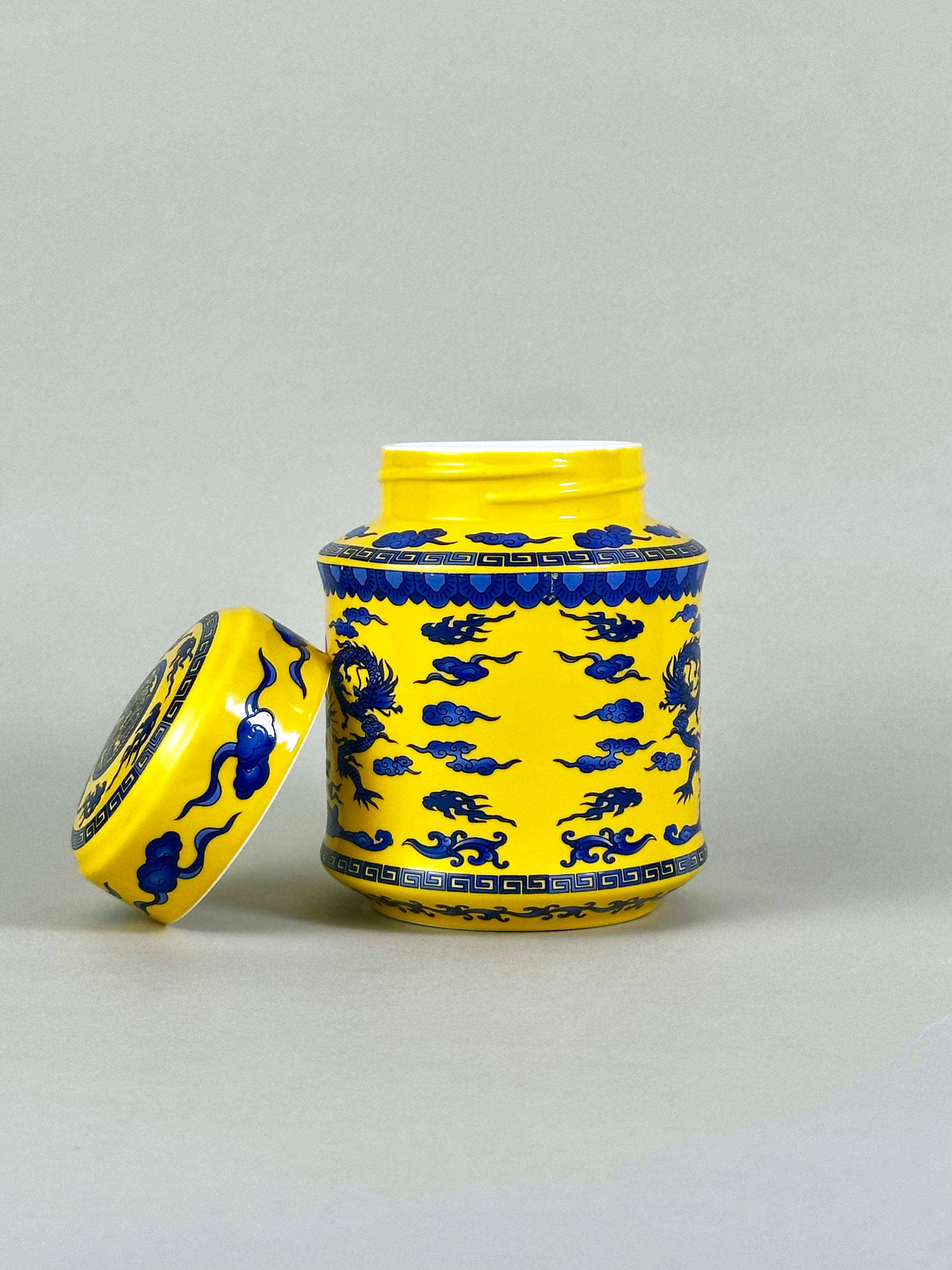 客戶定制 帝王黃青花龍紋陶瓷茶葉罐