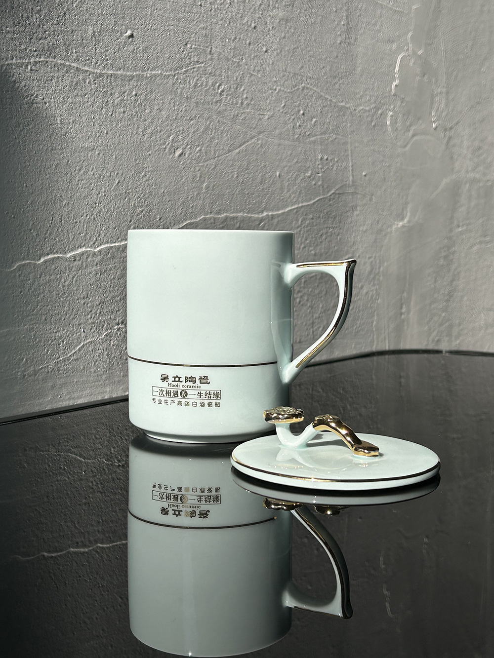 客戶定制 尖手柄如意蓋描金陶瓷茶杯